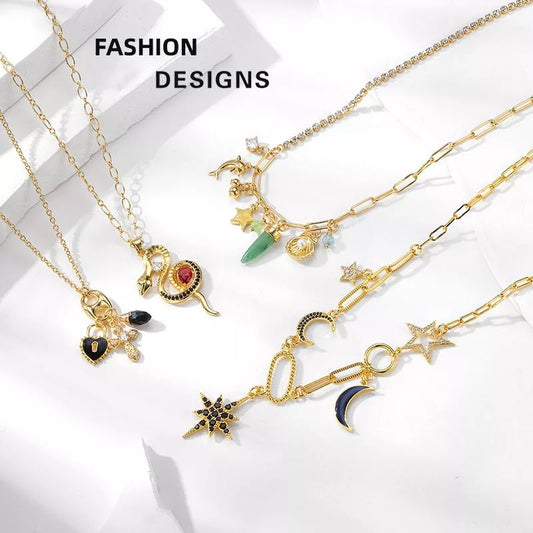 hhomeenjoy.com Copper-plated Real Gold Star and Moon Rhinestone Necklace for Women
