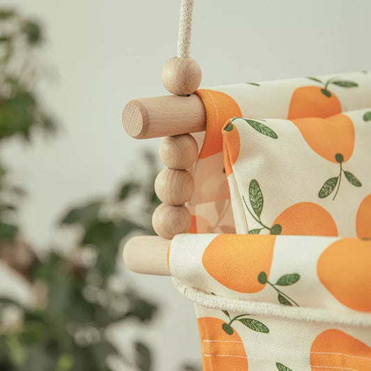 hhomeenjoy.com Cotton Canvas Baby Swing Chair with Wooden Seat and Cushion