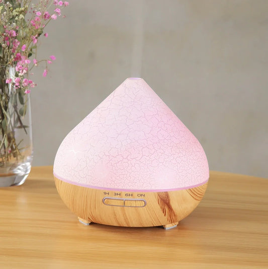 Crackle Volcano Humidifier with 36dB quiet operation and 1-litre water capacity - USB-powered aroma diffuser with 2-8 hour timer and wood grain finishes