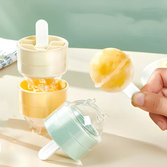 Creative Ice Cream Mold Lollipop Ice Tray Set: 4-Piece Silicone Moulds for Quick-Freeze Ice Cubes and Popsicles with Easy-Release Non-Stick Surface