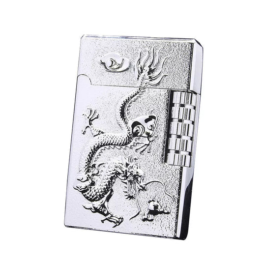 hhomeenjoy.com Embossed Chinese Dragon Gas Lighters with Carved Langsheng Design