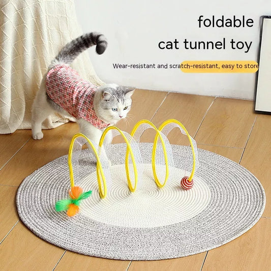 hhomeenjoy.com Folded Cat Tunnel S Type with Spring Toy Mouse for Interactive Play
