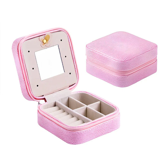 Creative travel portable jewellery box with flipping page display measuring 10×10×5.5cm, providing organised storage for earrings and small jewellery items while protecting them during transport