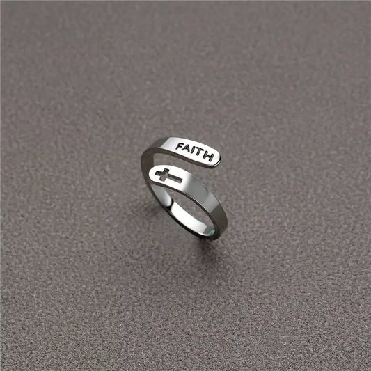 hhomeenjoy.com Hollow Cross Double Ring Stainless Steel Engraved Faith Simple Ring