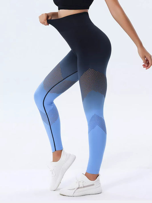 hhomeenjoy.com Hollow Design Gradient Printed Yoga Pants with High Waist for Women