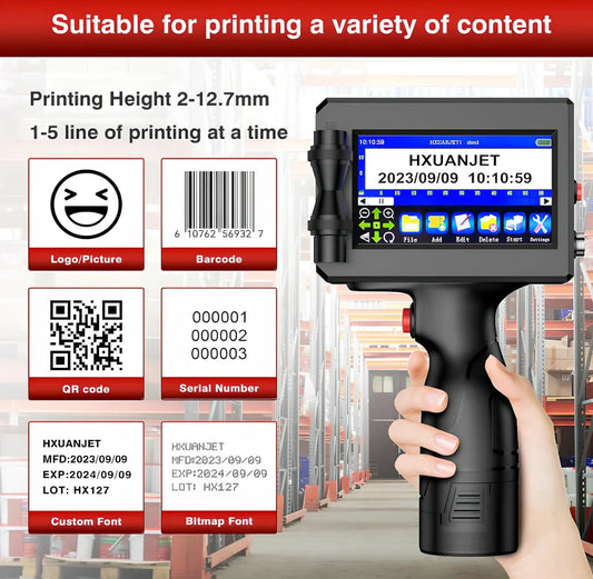 Digital intelligent automatic handheld code-spraying machine with adjustable 2-12.7mm printing height and 600DPI precision for industrial marking applications