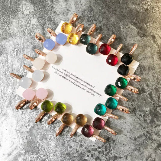 hhomeenjoy.com Platinum Plated Candy Color Earrings with Transparent Zircon Crystals