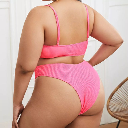 hhomeenjoy.com Plus-size Solid Pink Bikini Swimsuit with Chest Pad