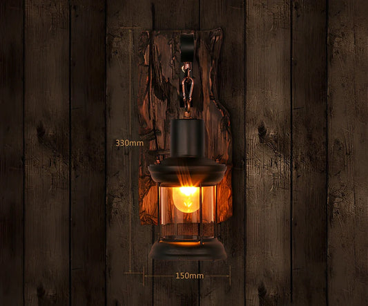 Distressed retro wall lamp with 150mm glass shade for vintage interior lighting, supporting 110-240V voltage range with ordinary bulb compatibility for authentic antique styling