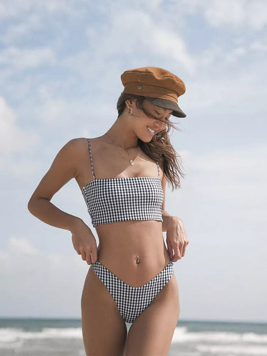 hhomeenjoy.com Retro-centered slim bikini three-point swimsuit for women