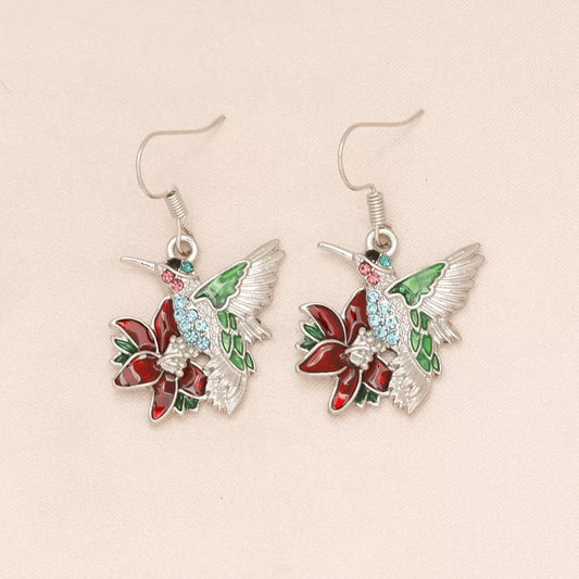hhomeenjoy.com Silver Hummingbird Diamond Pendant Earrings with Water Droplet Design