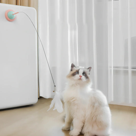 Doumao Stick interactive cat toy with ABS plastic construction, measuring 25cm in length, featuring vibrant lemon yellow, phosphor, and orange blue colour options for enhanced feline visibility