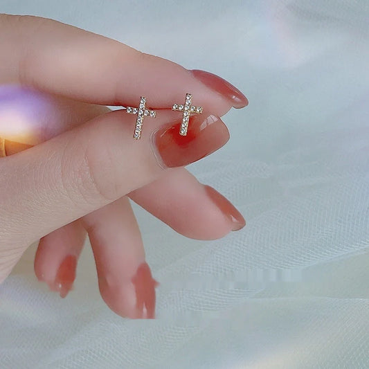 Hhomeenjoy 2024 Stainless Steel Cross Earrings with Zircon Inlay