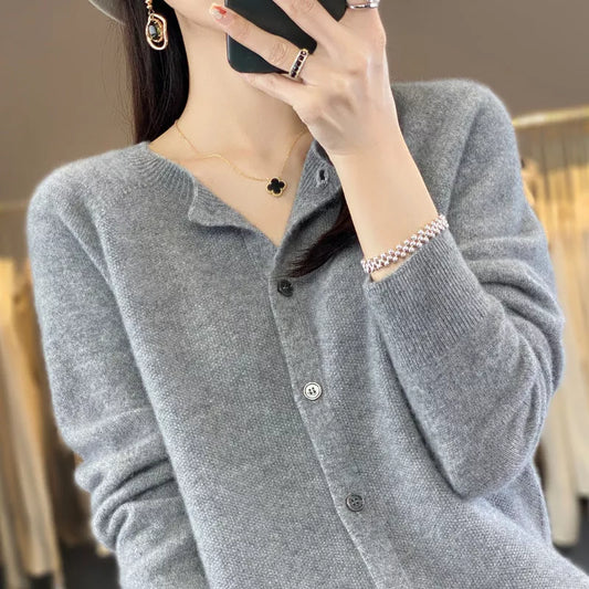 hhomeenjoy.com Women's Cashmere Cardigan with O-neck and Loose Fit