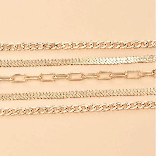 hhomeenjoy.com Women's Multi-layer Metal Chain Anklet Set in Gold and Silver