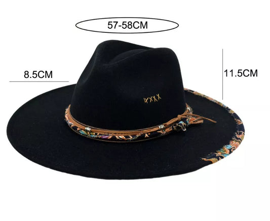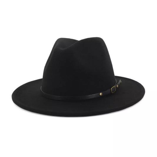 hhomeenjoy.com Woolen Flat Brim Fedora Jazz Hat in Black and Red