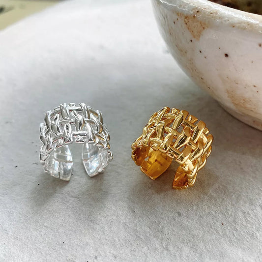 hhomeenjoy.com Woven Brass Ring with Hollow Cross Design for Women