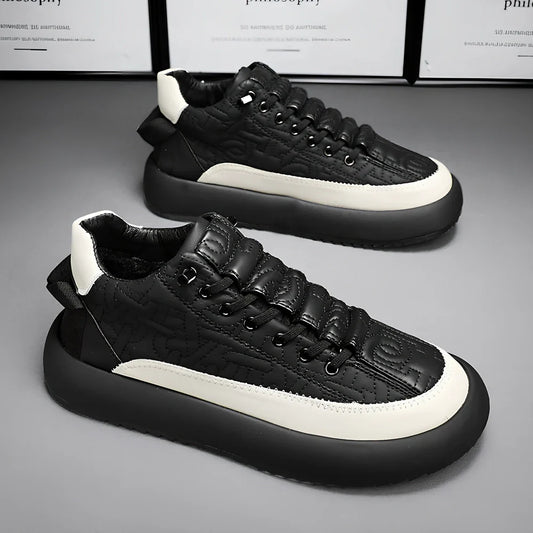 Men's elastic band leather sports casual shoes with 3-5cm thick sole for enhanced comfort and stability during daily wear and light activities