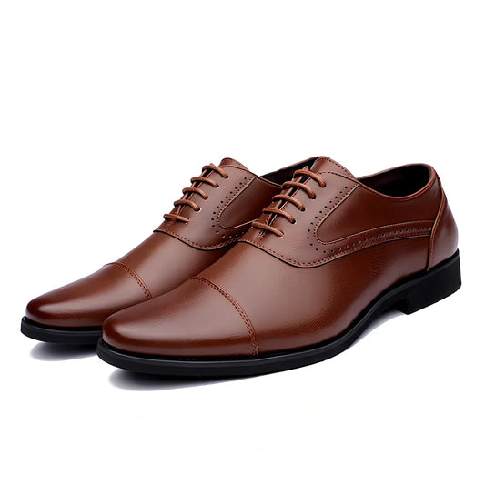 Men's casual leather shoes with 2cm height increase and non-slip rubber soles, featuring PU leather construction and sewing line detailing for office, wedding, and everyday wear