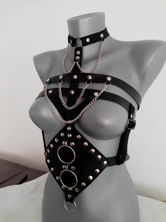 PU Leather Erotic Camisole Dress in Open Bra Design with Bondage Elements