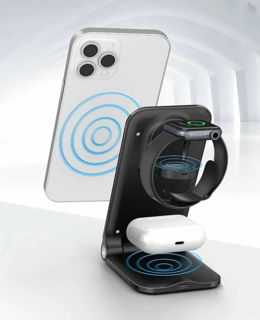 Stylish Wireless Charging Station for Desktops: 3-in-1 Convenience