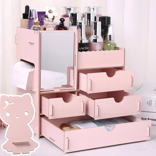 Wooden Cosmetic Storage Box with Dividers for Desk Organisation