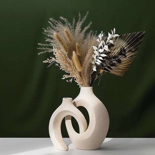 European ceramic vase set with 2-piece combination featuring glazed surface finish for durable home decoration with versatile styling options