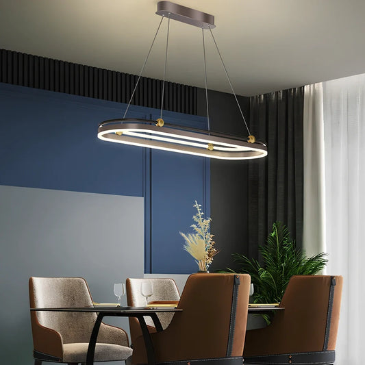 Modern aluminium chandelier with 10-15 LED lights providing 5000K colour temperature illumination for 10-15m² dining spaces in black gold or coffee finishes with zinc alloy construction
