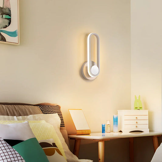 Modern bedroom bedside lamp with 330° rotation providing adjustable lighting across 5-10m areas using energy-efficient 12W power in black or white aluminium finishes