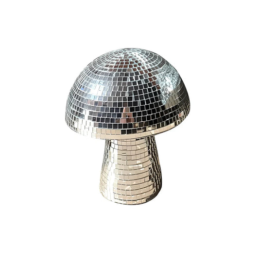 Mirror glass brick mushroom disco ball ornament with handmade craftsmanship, available in silver, gold, and rose gold finishes with multiple size options from 10cm to 28cm diameter