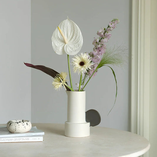 Misty moon ceramic vase measuring 11×15.6×20cm with hand-glazed finish that displays unique enamel precipitation patterns and accommodates medium floral arrangements