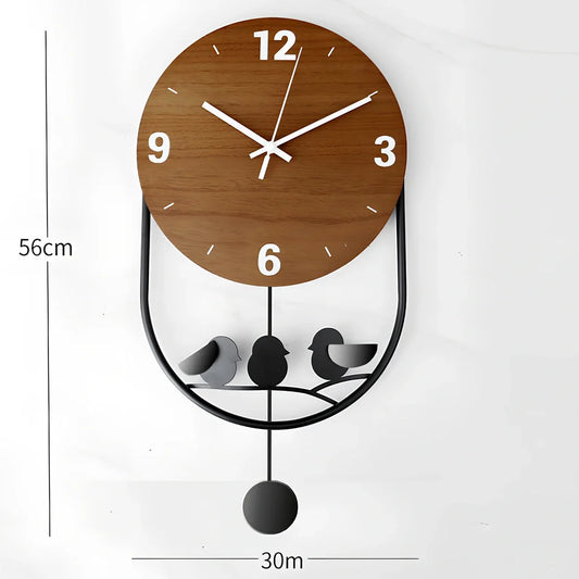 Minimalist wooden wall clock featuring silent quartz movement with four animal design options in black or gold finishes measuring 30cm diameter