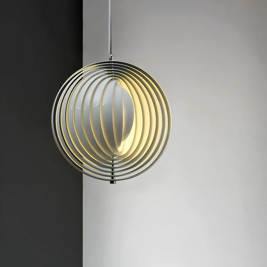 Modern iron LED chandelier with 1.5m height adjustment and 420mm diameter, featuring warm light illumination for living spaces and bedroom model rooms with rotating moon design elements
