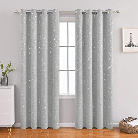 Modern minimalist blackout curtains with 100% light-blocking fabric in five standard UK sizes from 100x130cm to 132x213cm for complete room darkening and energy efficiency