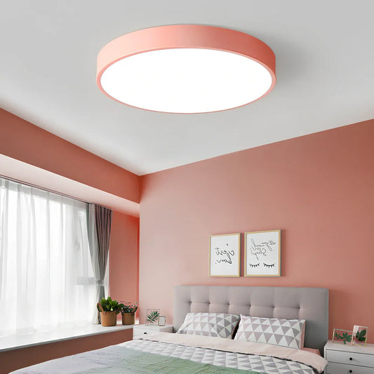 Modern minimalist ceiling lamp with remote control dimming and tricolour lighting options, providing energy-efficient LED illumination for bedroom spaces from 5 to 28 square metres with multiple size choices from 30cm to 60cm diameter