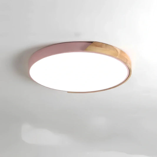 Modern minimalist ceiling light with 220mm diameter and 12W LED power offering three-tone colour switching and remote dimming control for rooms measuring 15-25 square metres