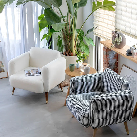 Modern fabric sofa chair measuring 73×71×57cm with medium density foam sponge interior filling for consistent seating support and durable frame construction