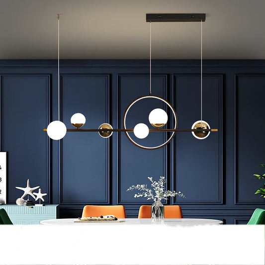 Nordic creative restaurant long chandelier with 112cm diameter and 6 light sources, providing adjustable illumination for 10-15 square metre spaces with iron construction and multiple dimming options