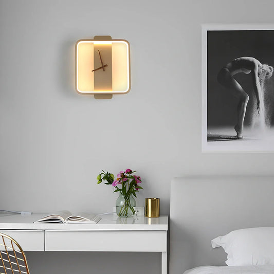 Nordic wall lamp with integrated LED clock: 300mm x 350mm bedside lighting providing 50,000 hours of service life across four colour and style options with 220V voltage compatibility