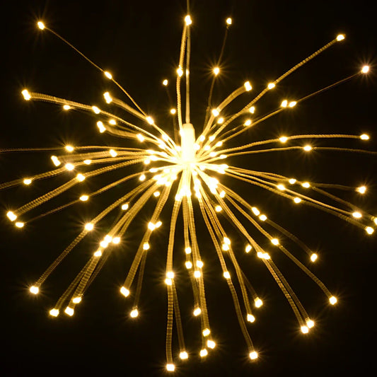 Outdoor waterproof remote control copper wire dandelion string lights with 7.2W power consumption, available in 27 styles including battery, USB, solar, and plug-in options from 25 to 240 lights