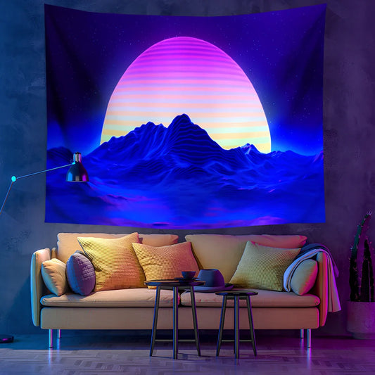 Fluorescent tapestry wall hanging with machine-woven polyester construction available in 150x100cm to 230x180cm dimensions featuring glow-in-the-dark properties for dormitory and living room decoration