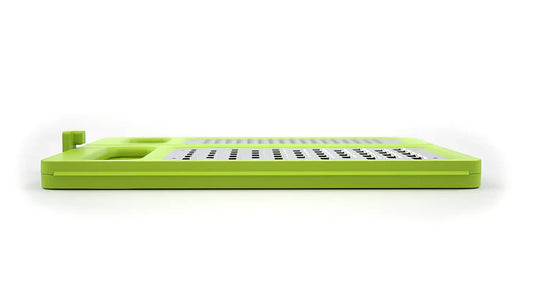 Foldable 4-sided stainless steel cheese box grater with sharp etched teeth that reduces resistance by 40% for effortless grating of hard ingredients like parmesan and vegetables