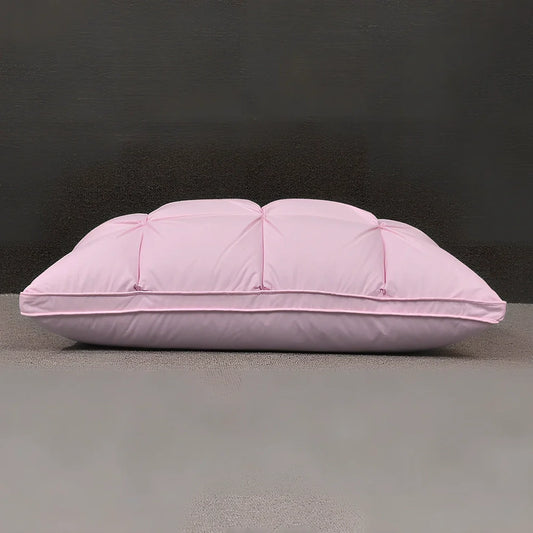 Rectangular white goose down pillow with 95% down filling in pure cotton fabric, available in three height options (48×74cm low, middle, high) and six colours for personalised sleep support