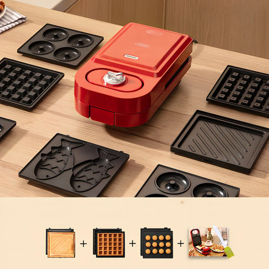 Retro breakfast machine with 4-5 timing gears and 2-3 slots for heating, defrosting, barbecue, and omelette functions in retro red or sakura powder colour options