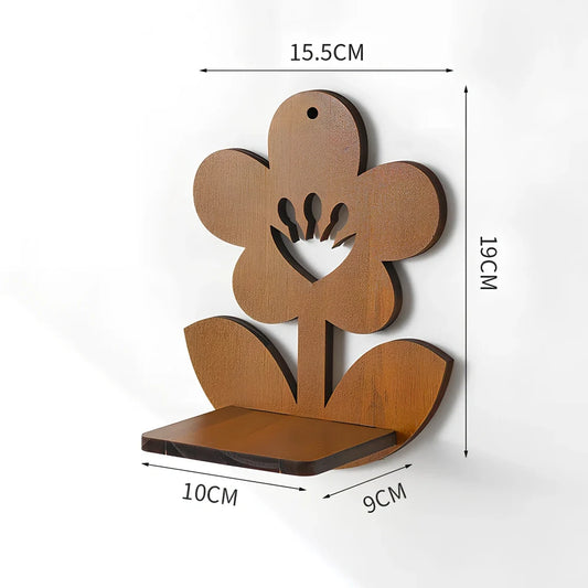 Retro wall-mounted hydroponic plant shelving made from solid wood with irregular shapes for living room decoration, featuring 11 nostalgic colour designs including castle, flamingos, and fruit patterns to display plants without soil