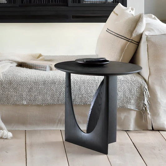 Round solid wood side table with 50cm diameter geometric design, providing stable bedside storage for children's rooms with Nordic style construction