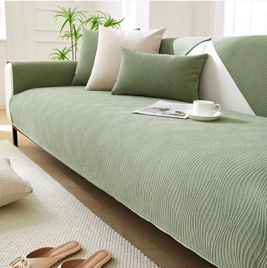 Four Seasons Universal Anti-Slip Fabric Cover protects leather sofas with non-slip backing that prevents shifting, available in 16 UK size options from 70x70cm to 110x240cm with dustproof chenille construction