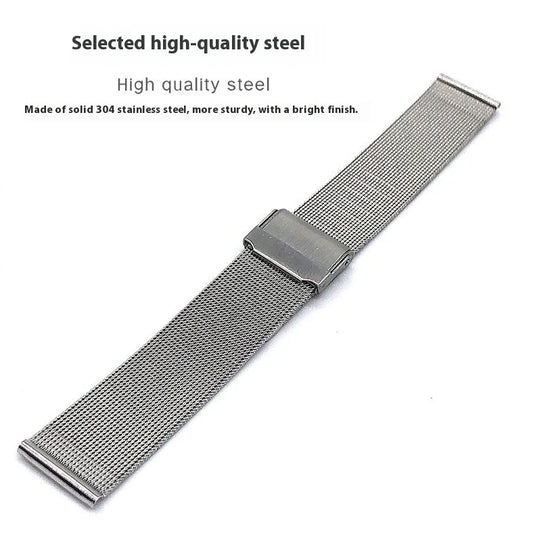 Single buckle stainless steel watch strap with 8 precise width options from 10mm to 24mm, featuring a double buckle closure system for secure wrist fit and easy adjustment without tools