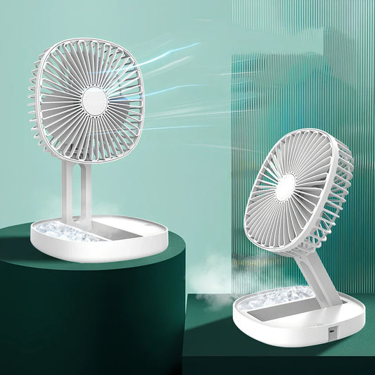 Small portable air conditioning fan with USB rechargeable battery, offering three adjustable wind speeds and ice cube cooling groove for enhanced summer comfort
