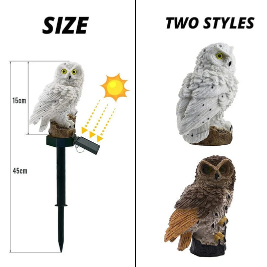 Solar owl garden light with 45cm height and waterproof design for outdoor decoration: uses solar panel charging to provide automatic LED illumination at night without cables or installation